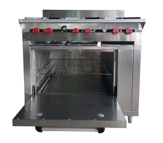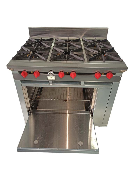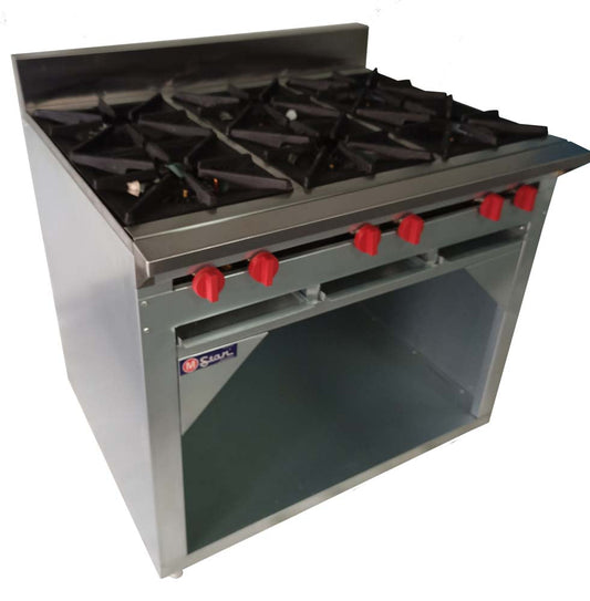 Cocina a gas 6 Hornillas Hondas, Plancha Gratinador y Horno