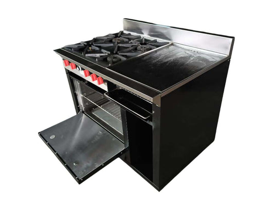 Cocina a gas 4 Hornillas Hondas, Plancha Gratinador y Horno