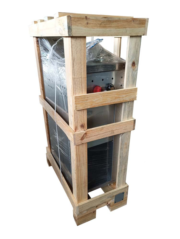 Freidora a gas elaborada en acero inoxidable y estructura en galvanizado, con una puerta que permite el acceso al drenaje de los líquidos y a los pilotos de los quemadores, una caldera cónica de acero inoxidable 304 donde se aloja el agua. Diseñada específicamente para todo tipo de frituras que necesitan un gran nivel de aceite para su cocción. Este equipo esta dirigido principalmente para negocios como restaurantes, casinos y locales de comida rápida.