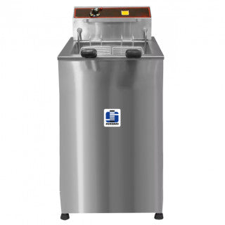 FREIDORA ELÉCTRICA DE PISO DE 15 LITROS TOTALMENTE EN ACERO INOXIDABLE DE 8 MIL WATTS. CONSUMO 8 KW POR HORA. VOLTAJE 220 V / 60 HZ. MEDIDAS ALTO 97 CM X 40 CM ANCHO X 60 CM PROFUNDO. PESO DEL EQUIPO 19 KILOS.